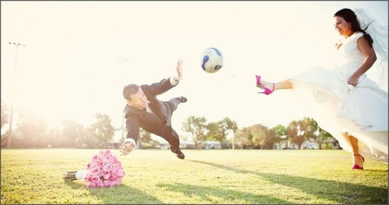 Naturalmente, se vocês são noivos mais tradicionais ou introvertidos, esse tipo de foto não combina muito com o casal. Mas vale a pena dar uma olhada nas fotos para dar umas boas risadas.