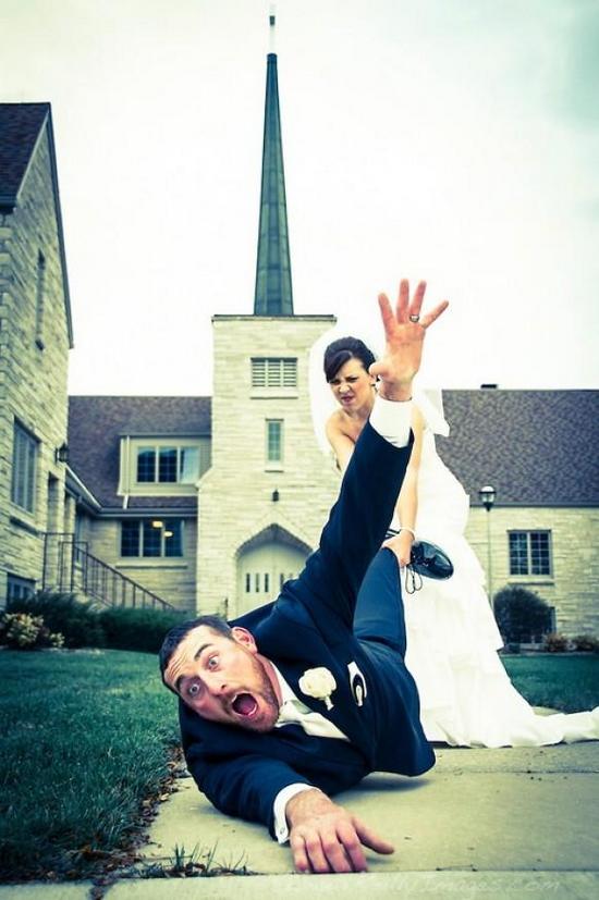 Quando abre um álbum de casamento, você espera encontrar fotos dos noivos com os amigos, familiares e padrinhos, mas não espera que essas fotos sejam engraçadas, ou tenham um tom meio maluco. Mas essas fotos provam que, mesmo em um dia cercado de formalidades, é possível quebrar alguns protocolos e ter uma lembrança divertida para o resto da vida.