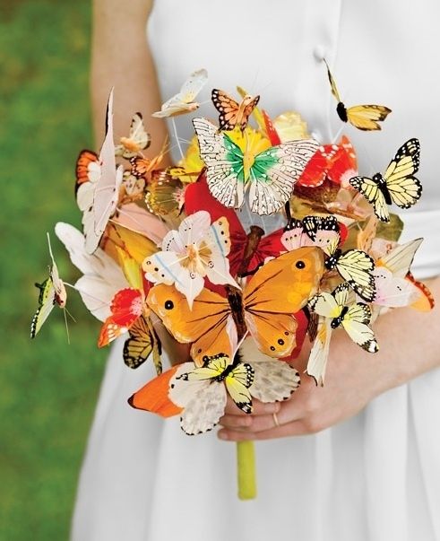 Borboletas são apaixonantes e tem tudo a ver com flores. Podem ser de qualquer material - o importante é inovar no acessório e surpreender seus convidados.