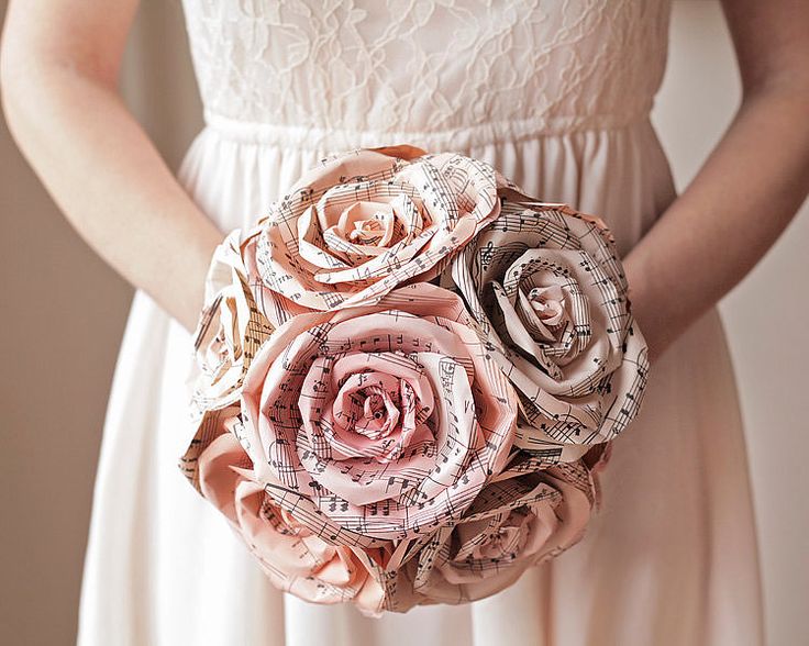Para fazer as flores desse buquê, escolha um papel com uma mensagem especial - podem ser as páginas de um livro que você goste muito, uma poesia ou mesmo a partitura de uma música.