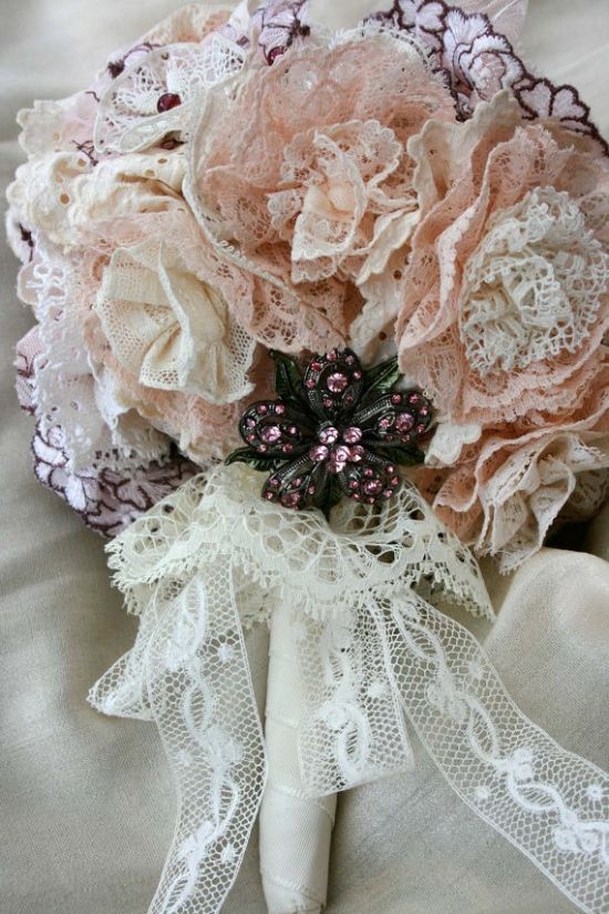 Combine tecidos e cores para montar um buquê que seja a sua cara. A renda Deixa o buquê delicado e feminino, enquanto o feltro é um material super fácil de ser trabalhado.