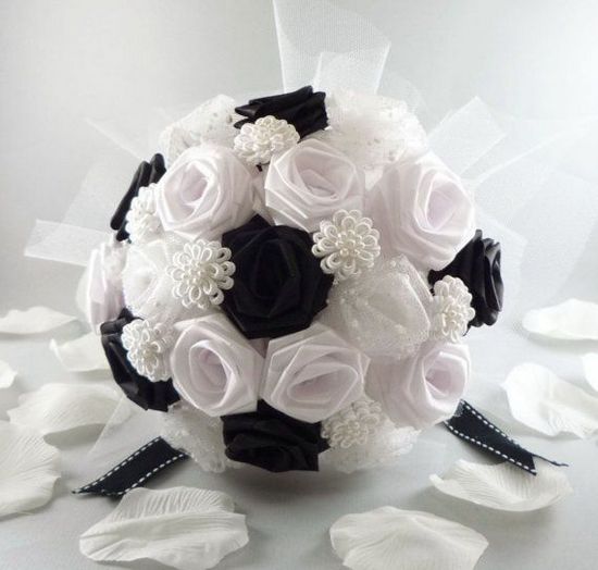 Branco, com um formato arredondado e detalhes escuros. Converse com sua florista e veja se ela pode fazer um buquê que lembre uma bola de futebol – uma ideia bem original!