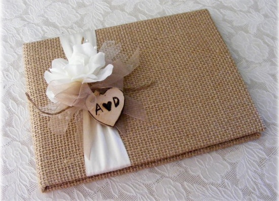 Outra opção é comprar um caderno com formato diferente em uma papelaria e enfeitá-lo como você achar melhor: colar uma foto de vocês na capa, fazer aplicações de renda ou que sua imaginação permitir.